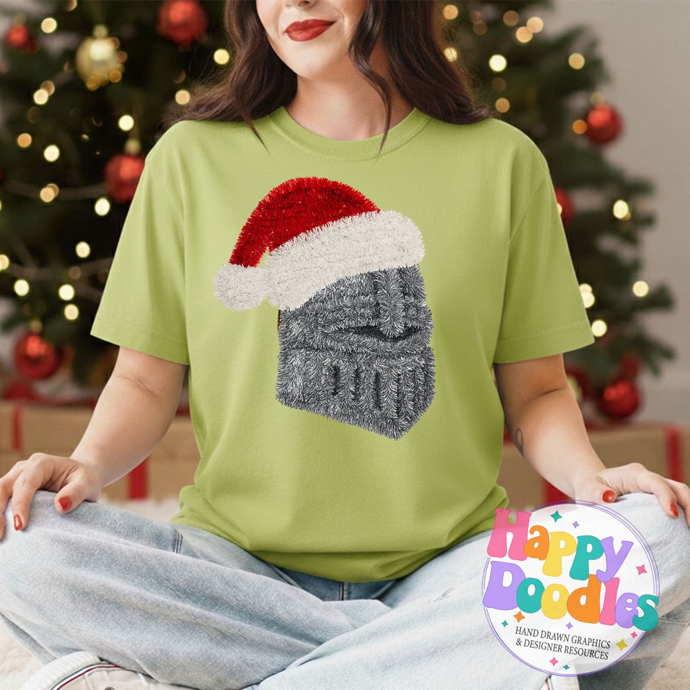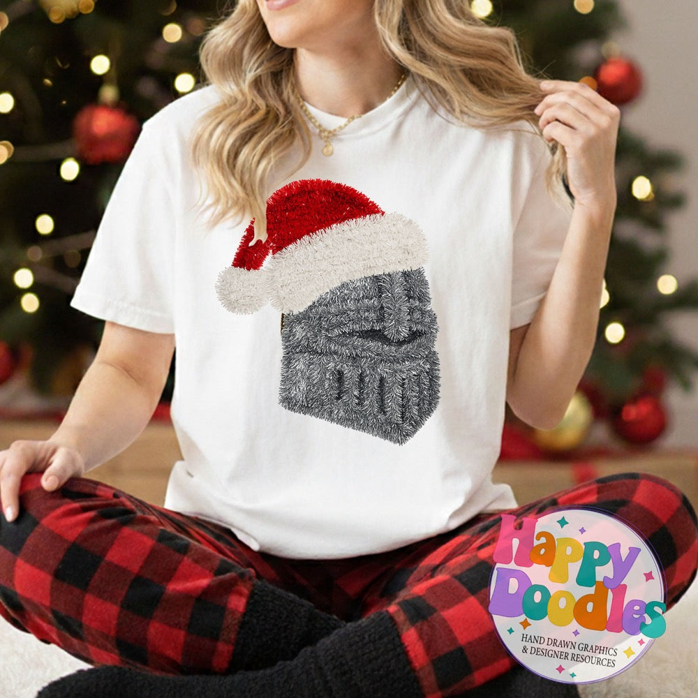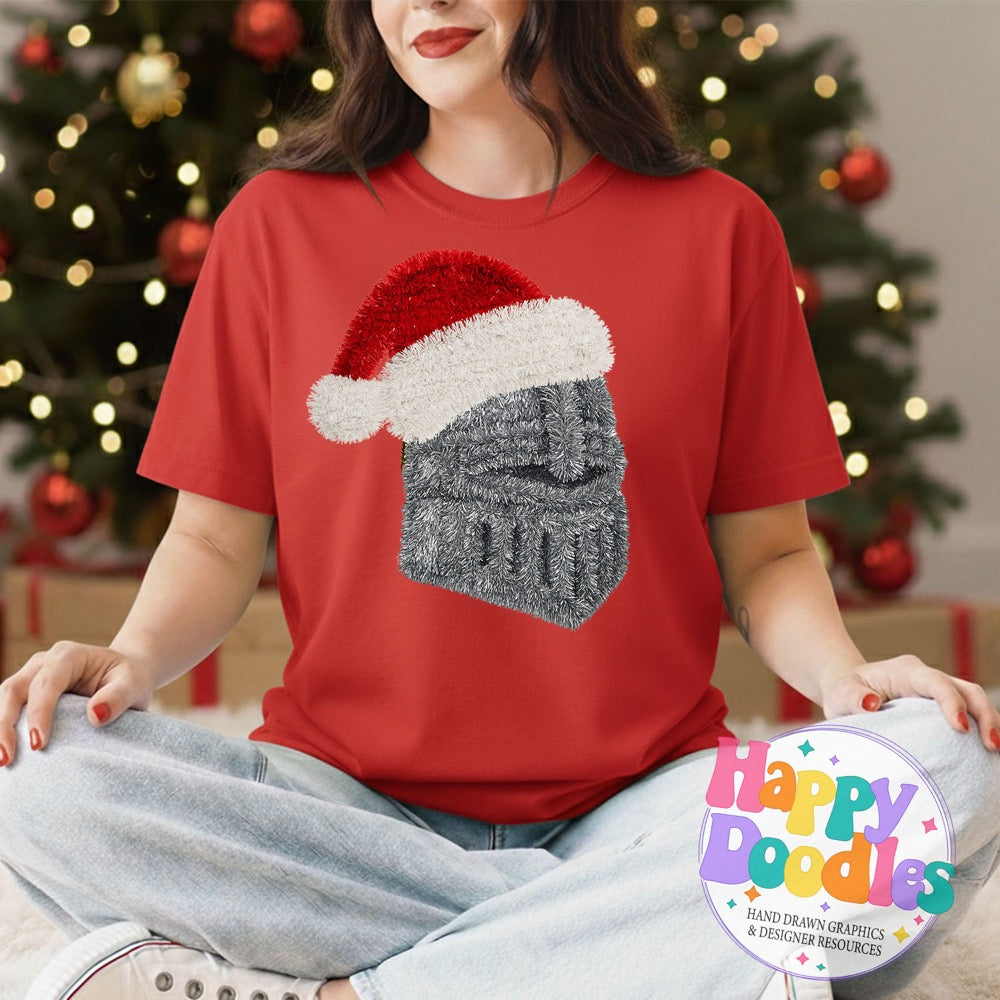 Bring cozy Christmas magic to your crafts with this Tinsel Knight Faux Tinsel Mascot clipart.