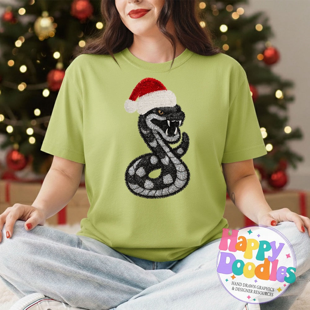 Bring cozy Christmas magic to your crafts with this Tinsel Rattler Faux Mascot clipart.