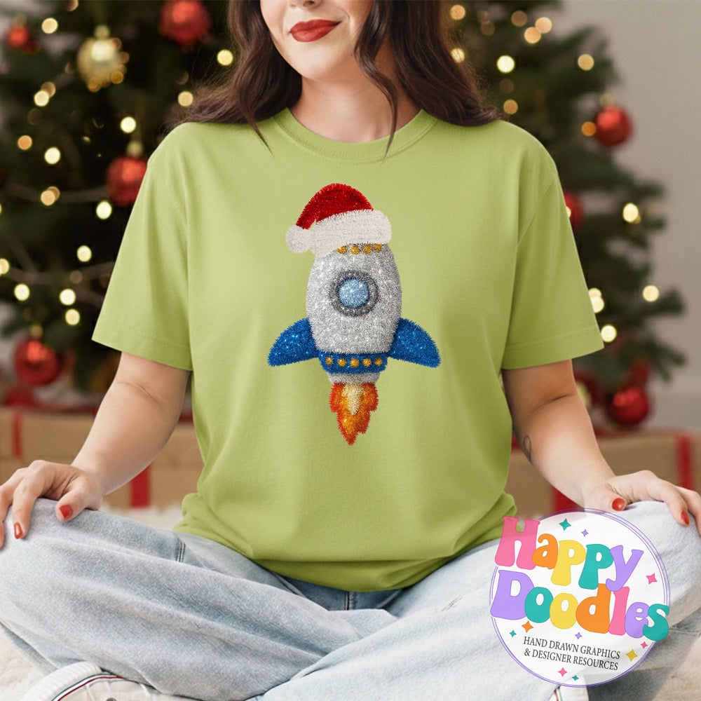 Bring cozy Christmas magic to your crafts with this Rocket Faux Tinsel Mascot clipart.